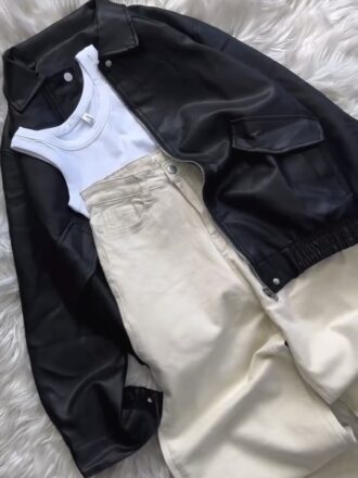 کت چرم پاییزه مشکی/ کد ۲۴۵